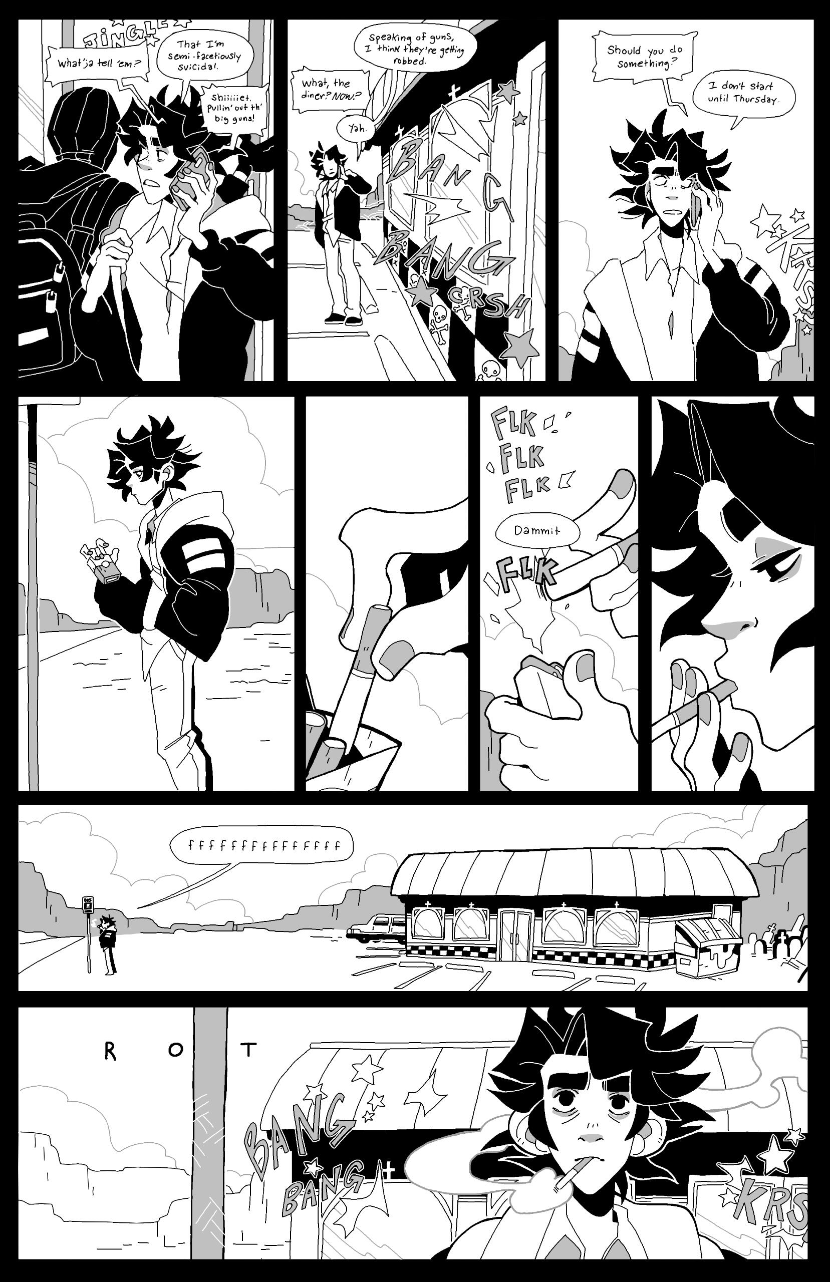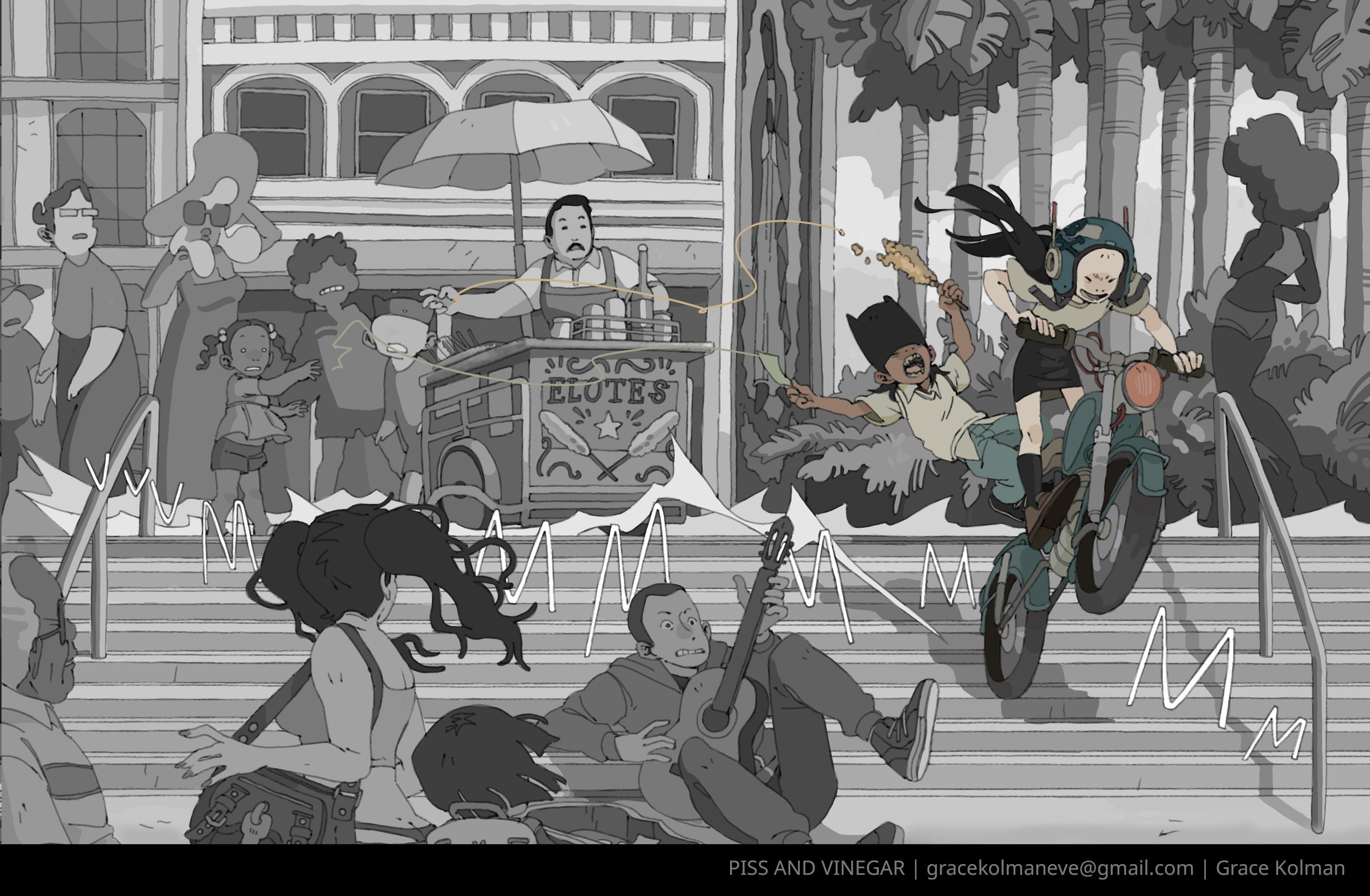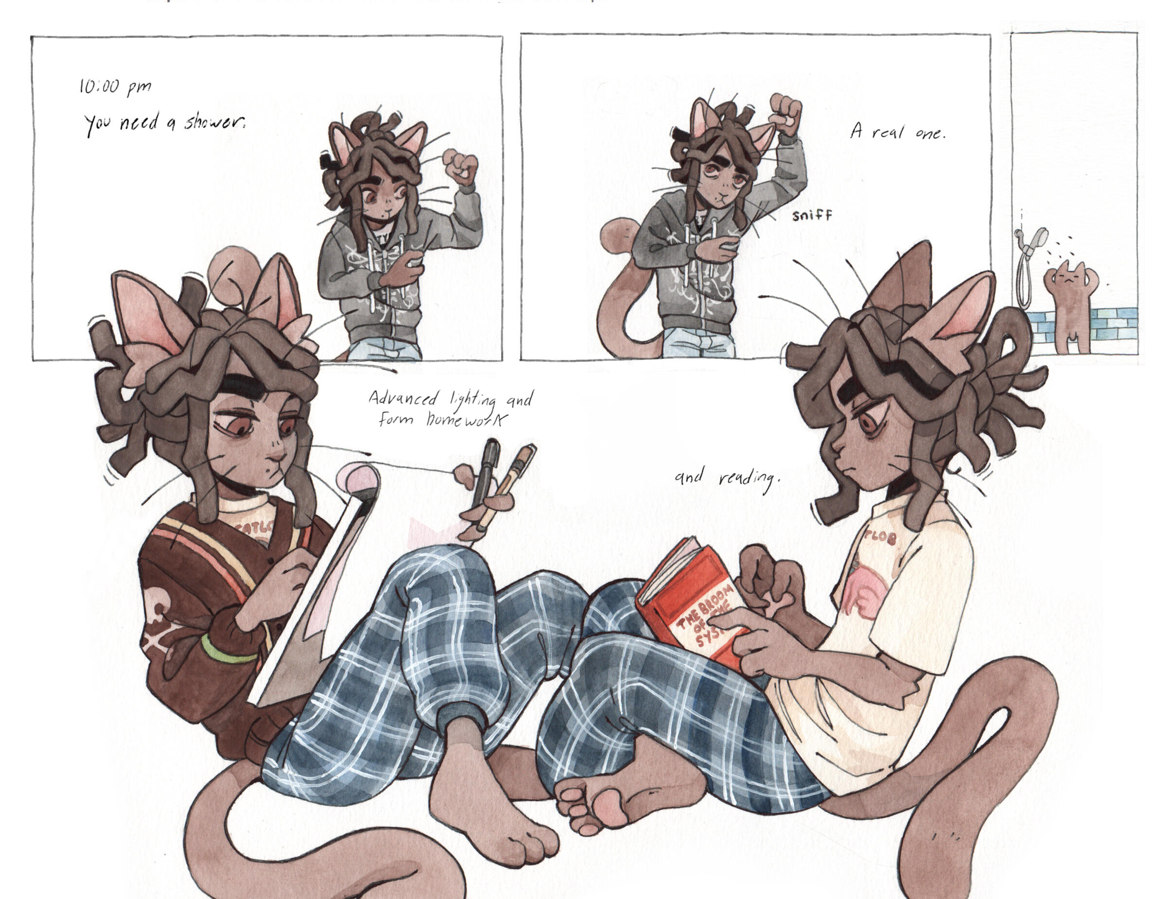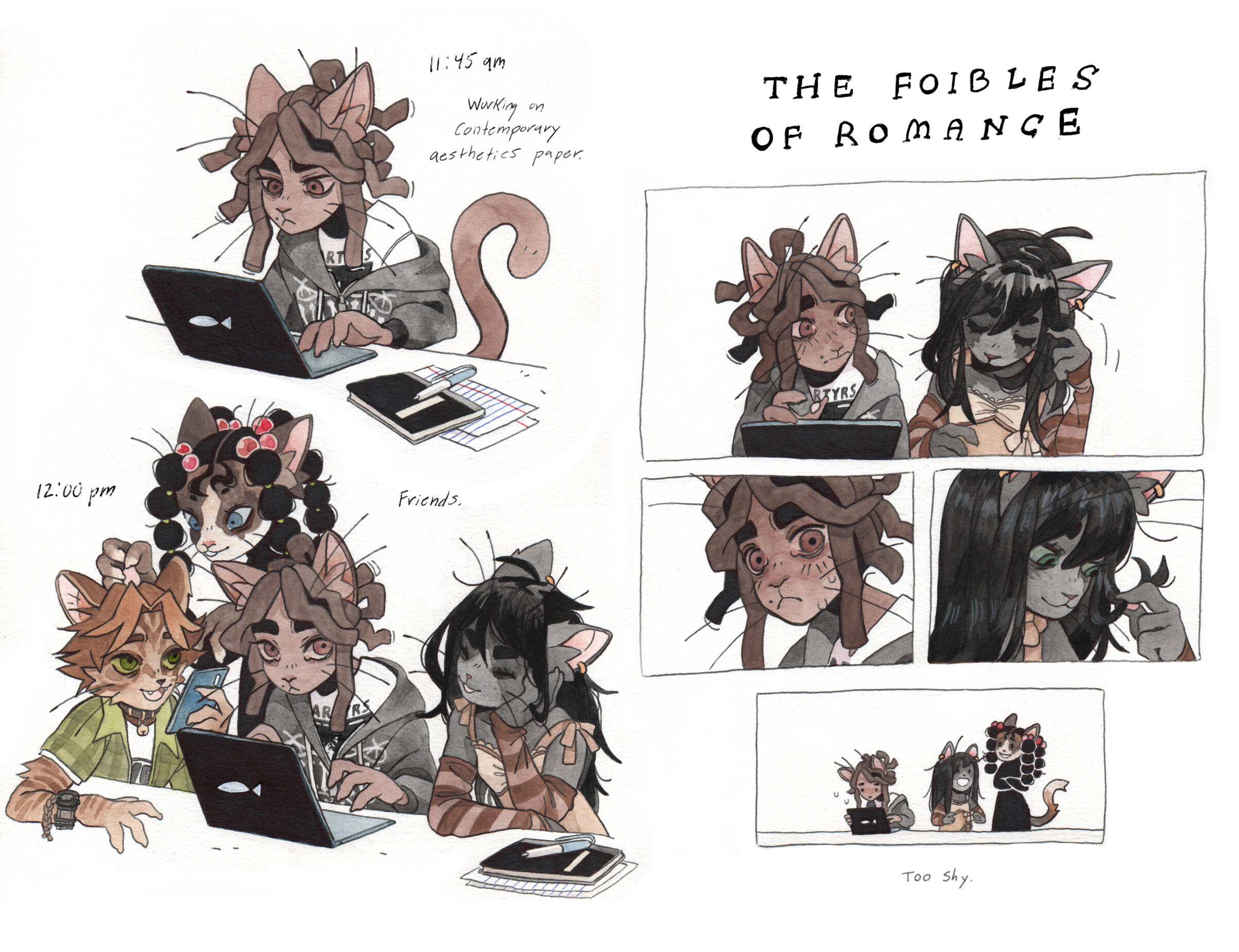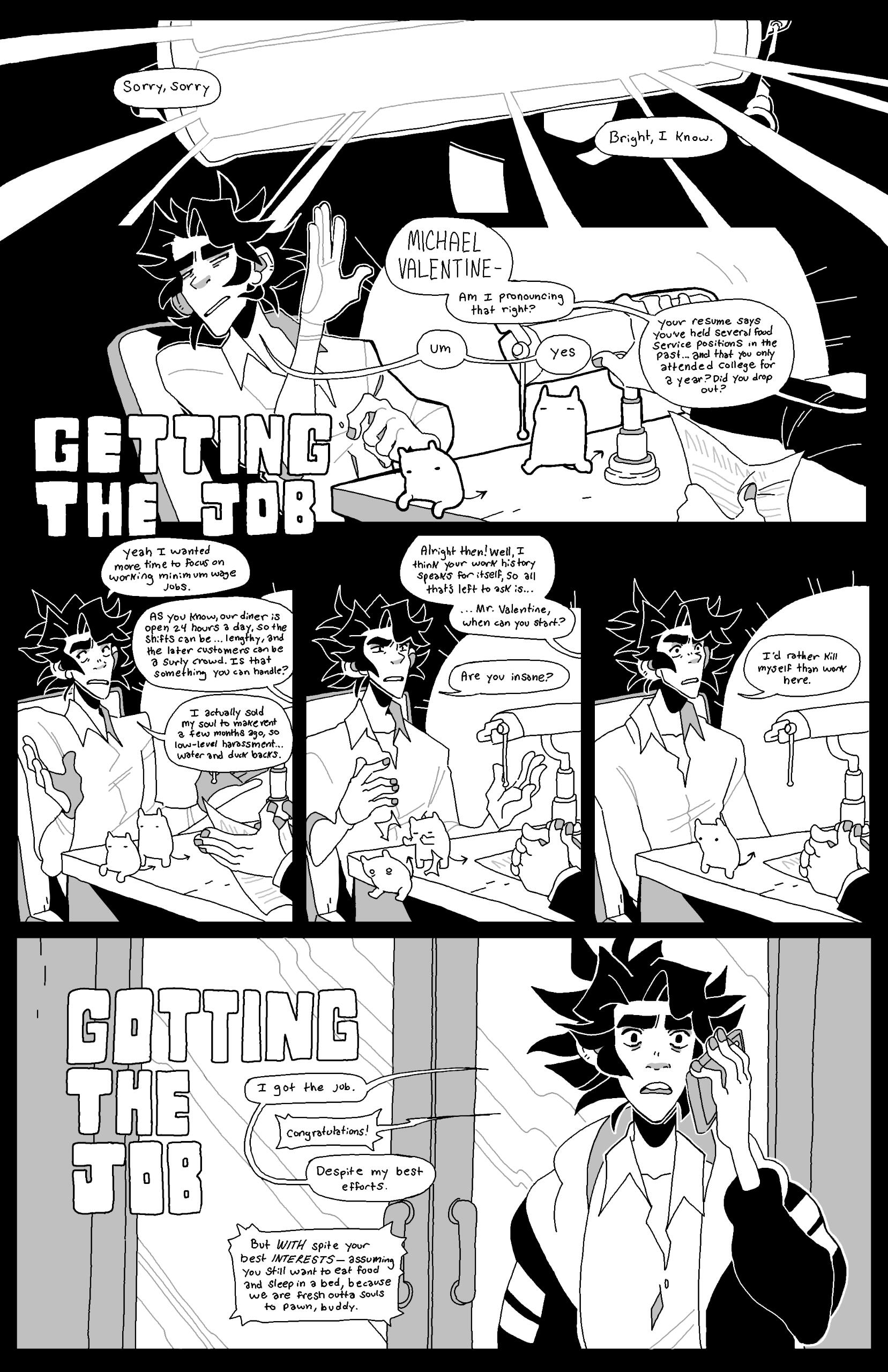 Grace Kolman draws, mostly comics. They have previously worked as a character and graphic designer, currently work as a freelance illustrator, and are hyping themself up in the mirror to make another comic. Grace’s last comic, Tomcat Bachelor's, was about a cat getting his art degree and all their friends “really liked” it.For any freelance or work opportunities, you can reach them at [email protected]