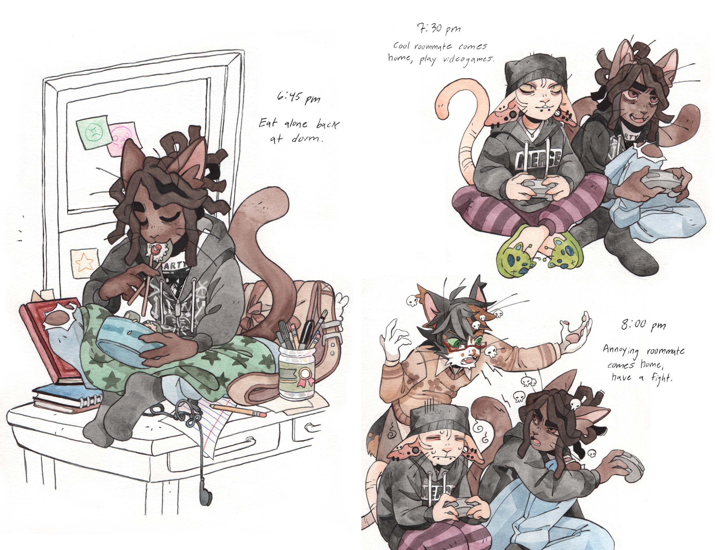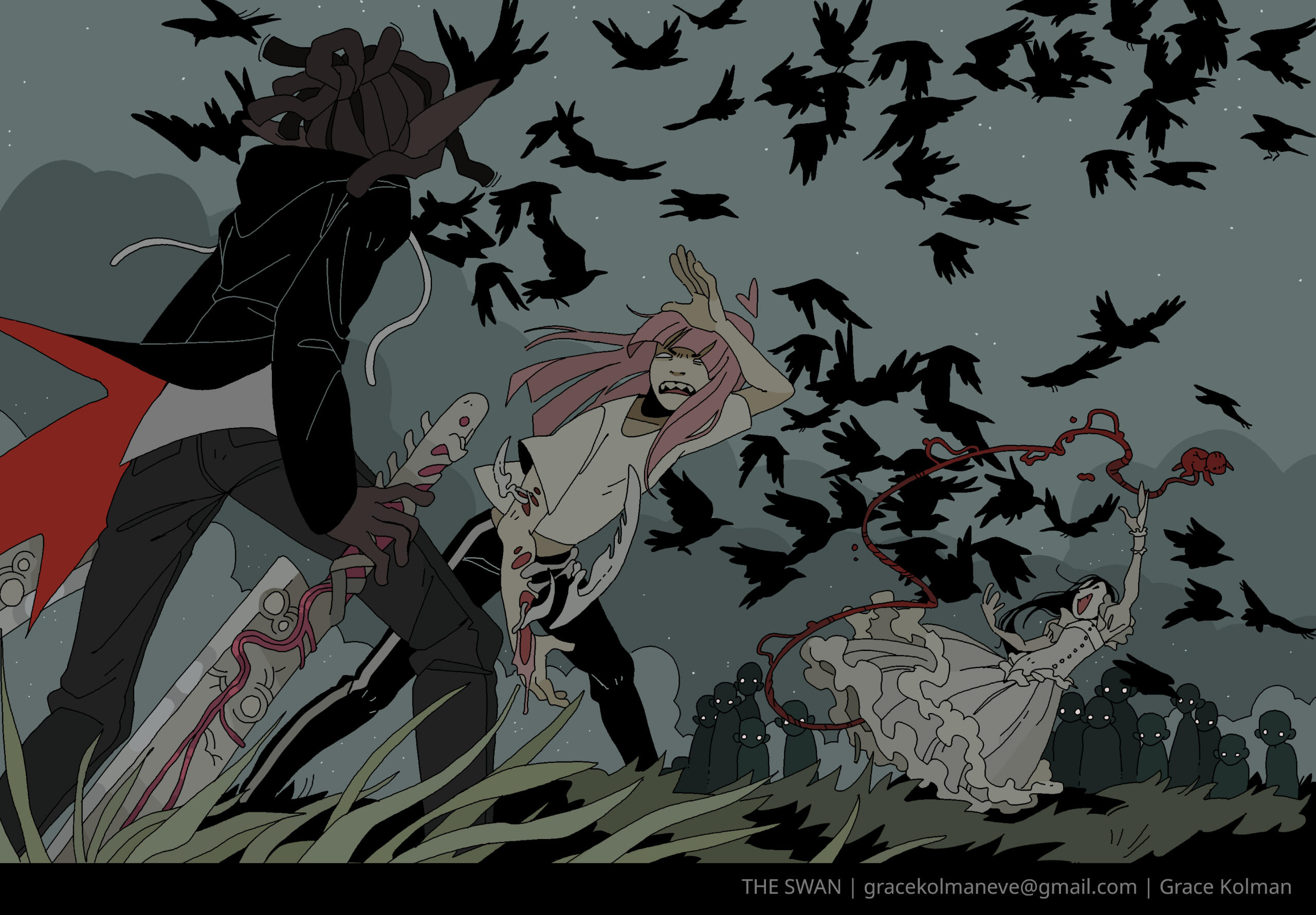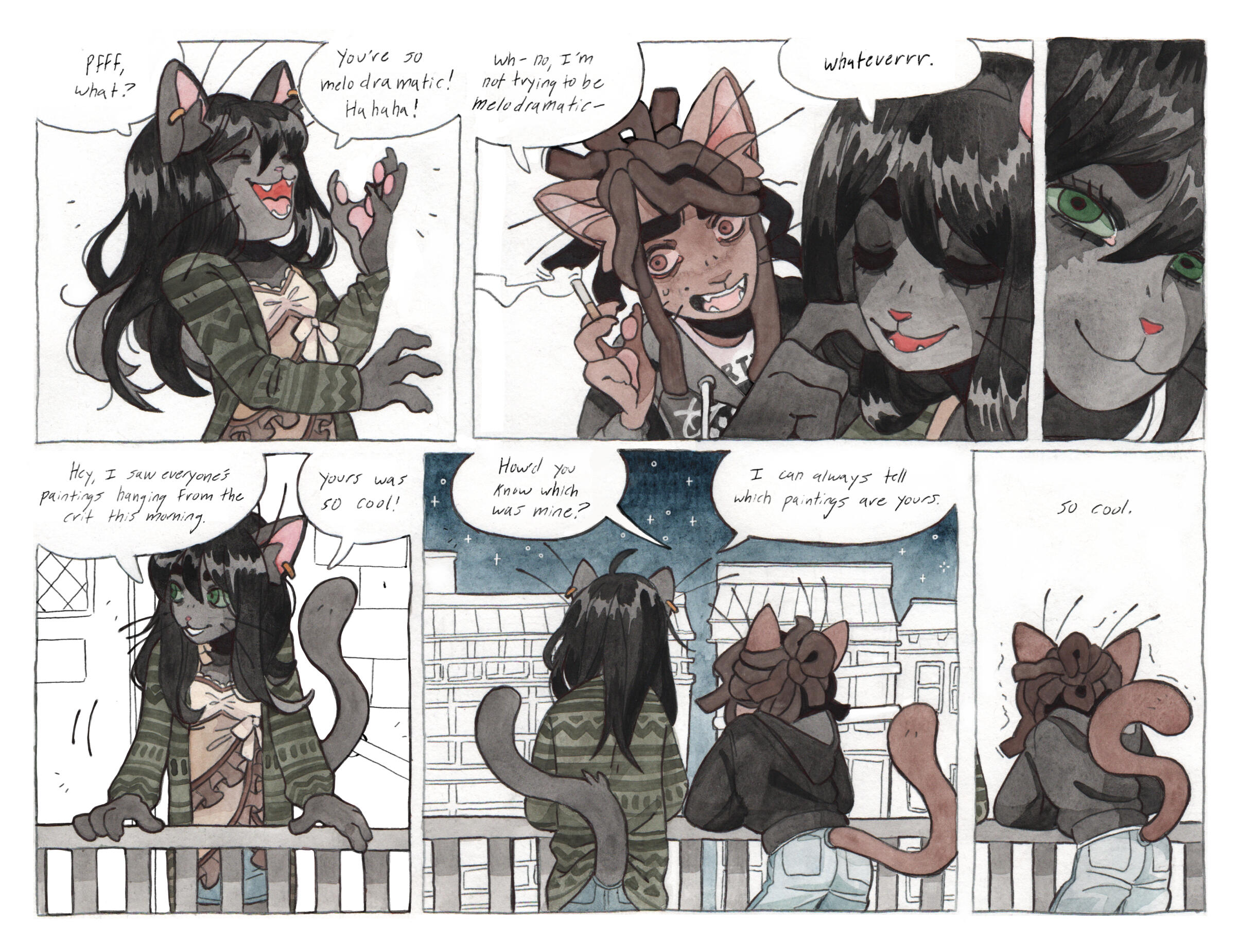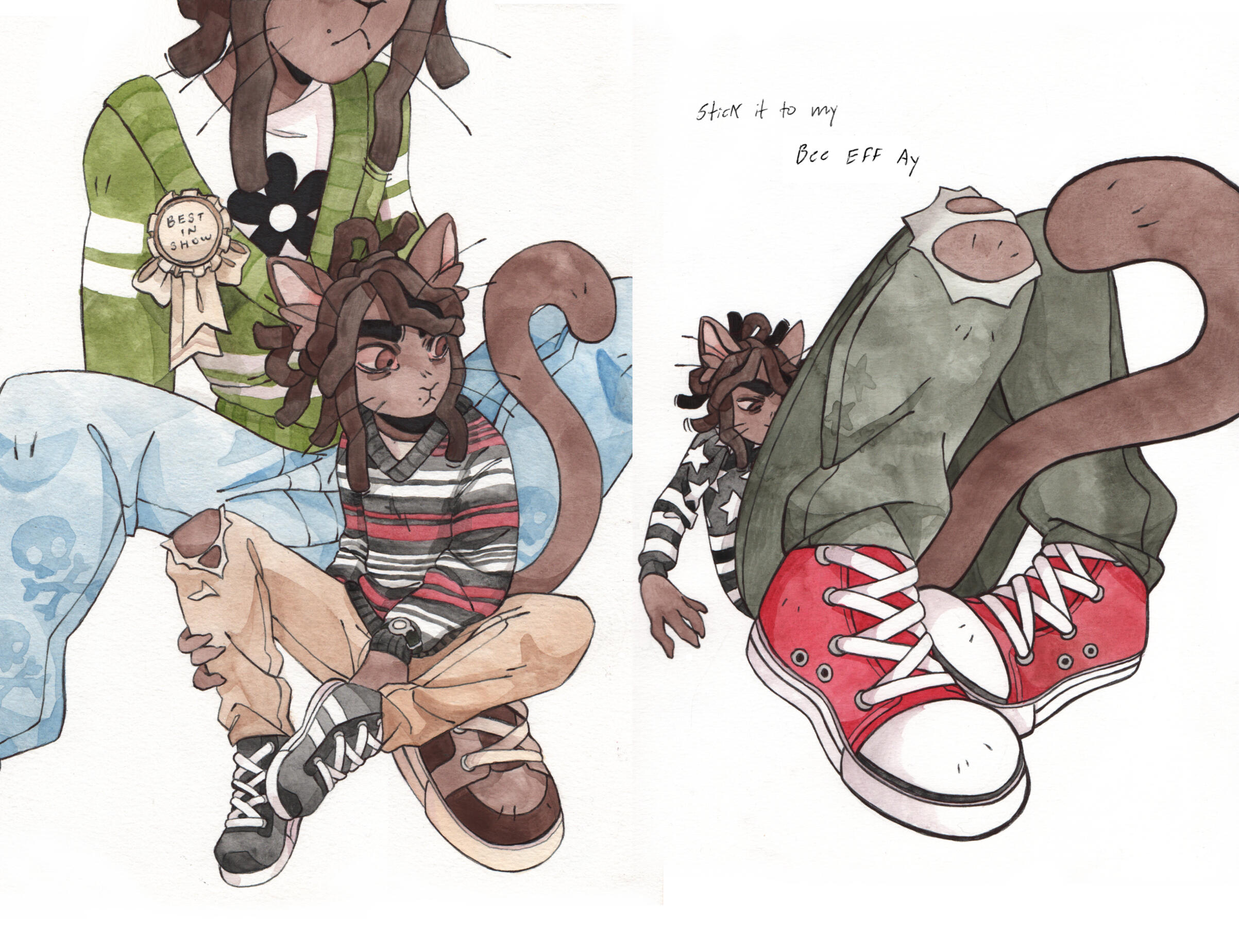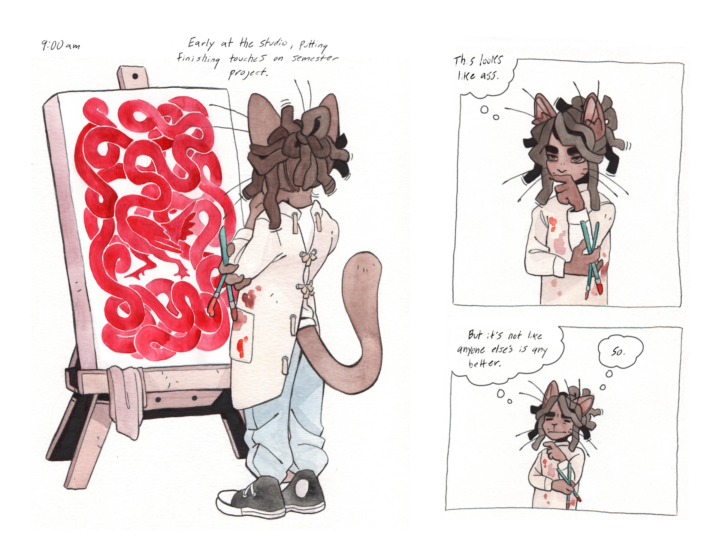 Grace Kolman draws, mostly comics. They have previously worked as a character and graphic designer, currently work as a freelance illustrator, and are hyping themself up in the mirror to make another comic. Grace’s last comic, Tomcat Bachelor's, was about a cat getting his art degree and all their friends “really liked” it.For any freelance or work opportunities, you can reach them at [email protected]