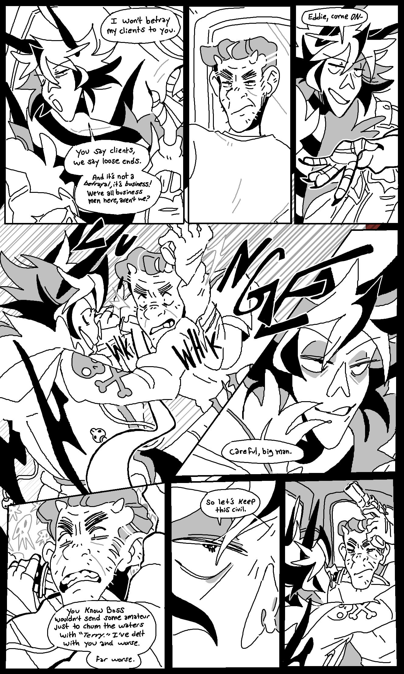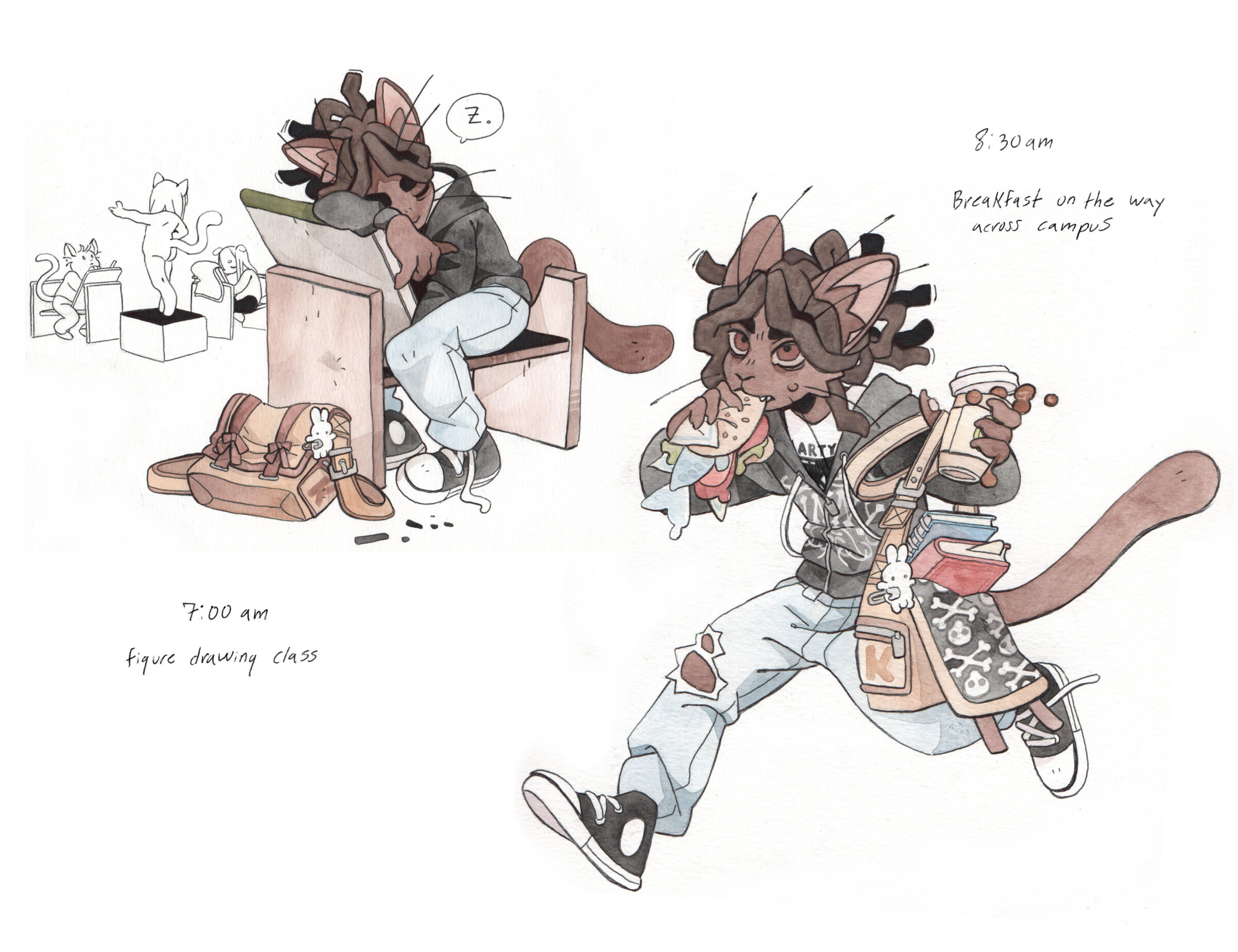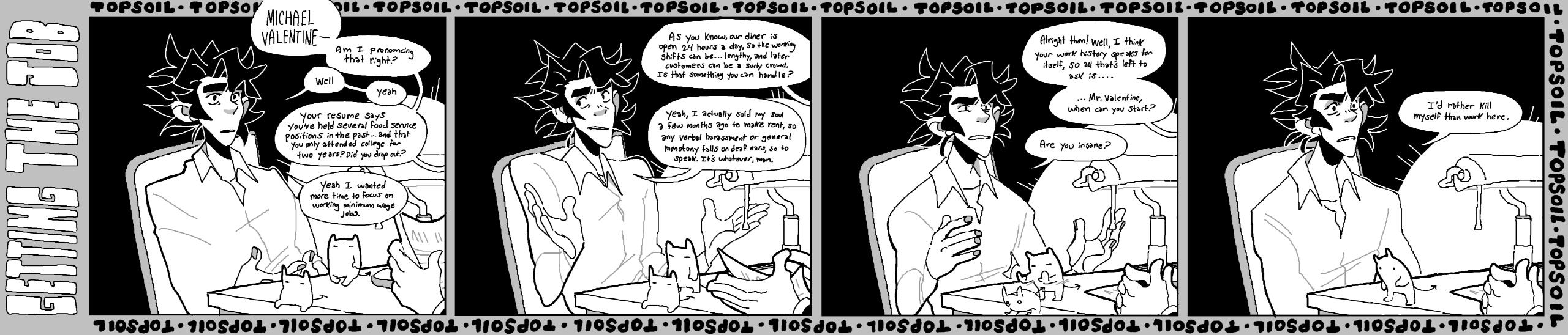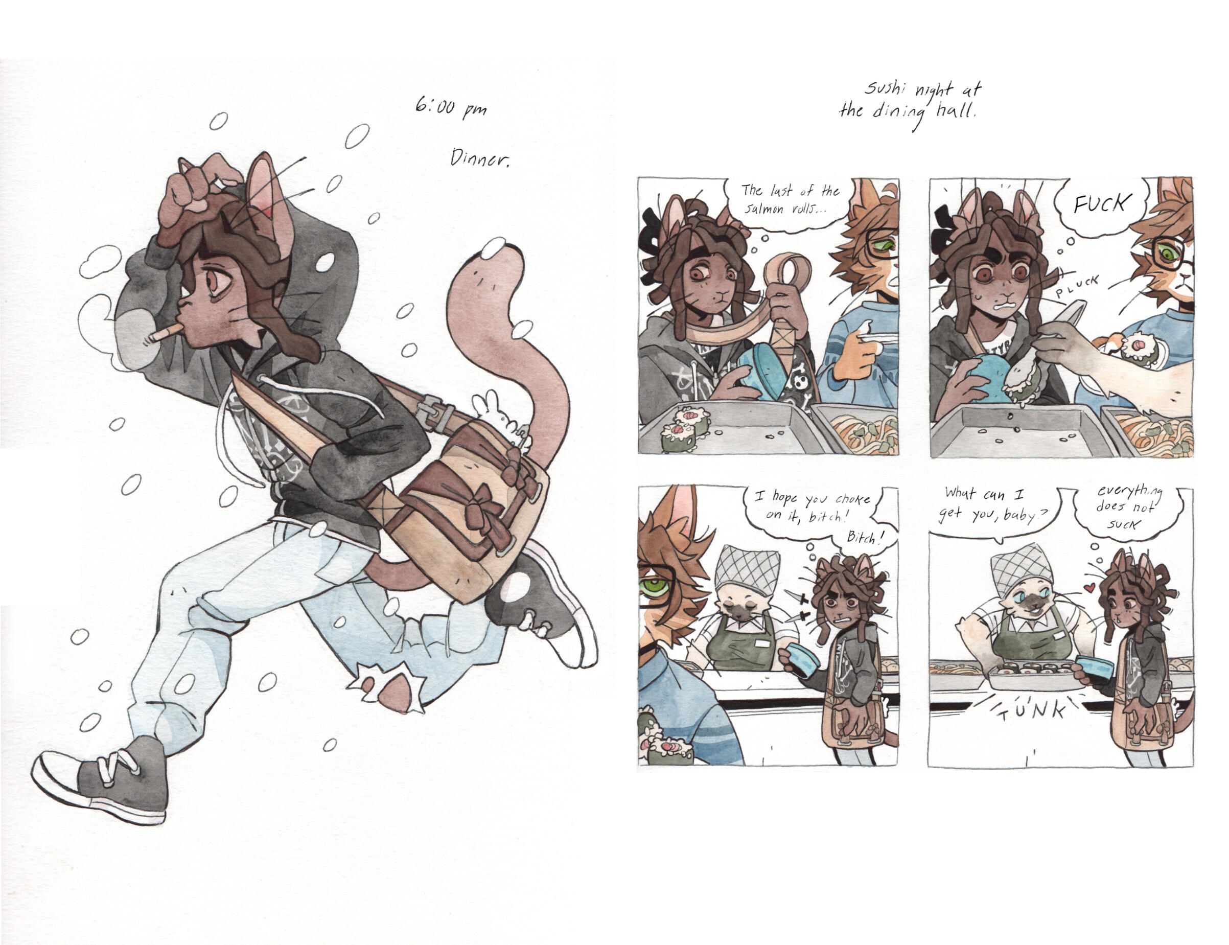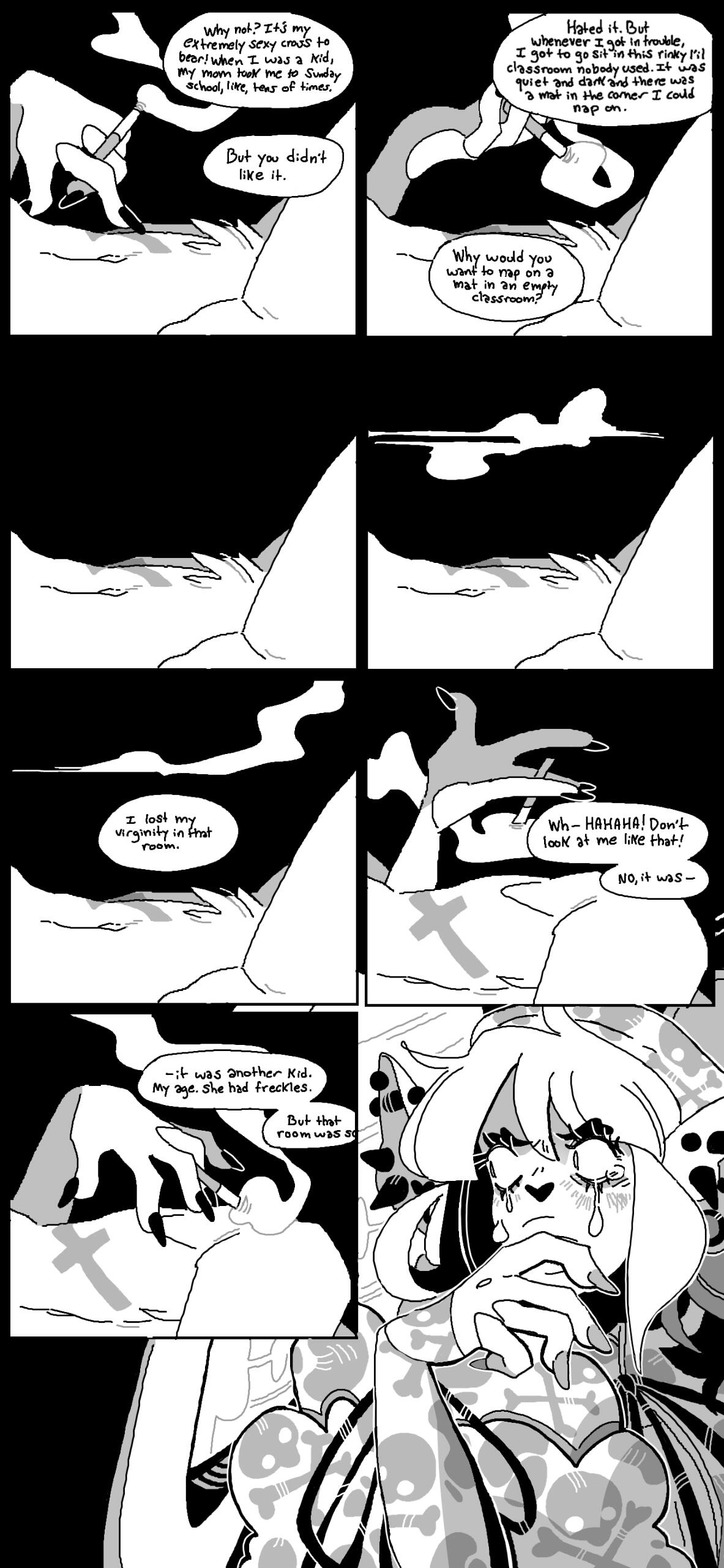 Grace Kolman draws, mostly comics. They have previously worked as a character and graphic designer, currently work as a freelance illustrator, and are hyping themself up in the mirror to make another comic. Grace’s last comic, Tomcat Bachelor's, was about a cat getting his art degree and all their friends “really liked” it.For any freelance or work opportunities, you can reach them at [email protected]