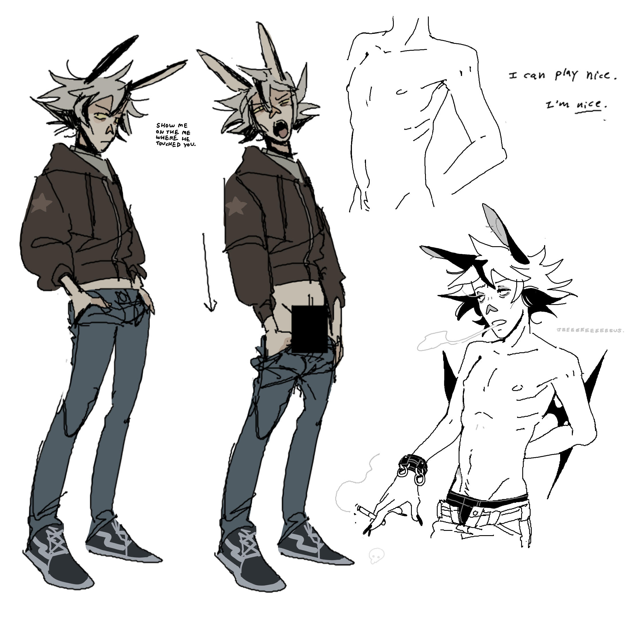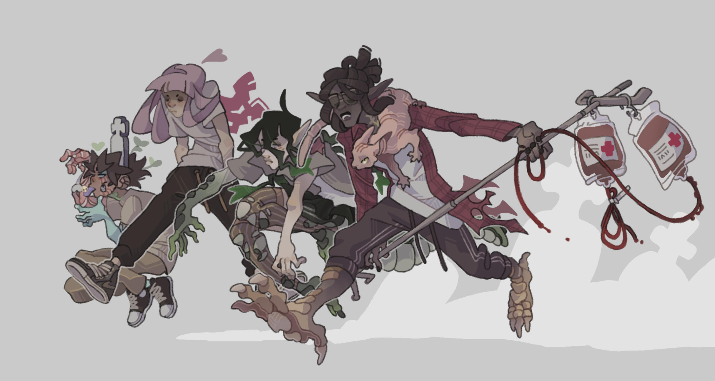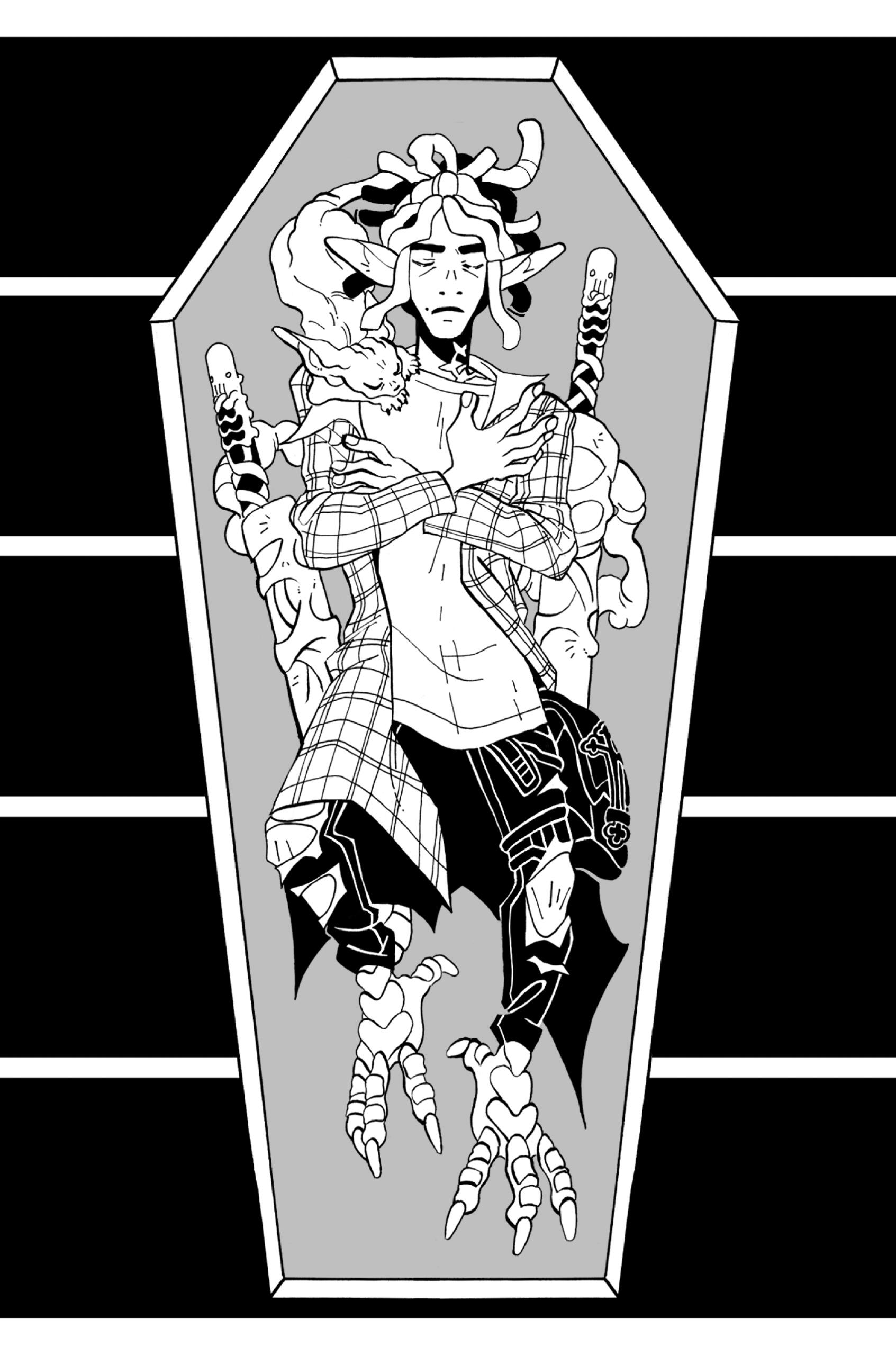 ASTER - Darling ZombieKilled in a tragic car accident and brought back from the dead by the plants and fungi sprouting in his corpse, Aster shares a symbiotic relationship with his forensic flora. In exchange for artificially pumping his heart and powering his brain, he keeps them healthy and happy off a diet of compostable greens and human flesh. Though he is rotten inside and out, Aster is optimistic and kind, and generally operates under good intentions- save for occasionally engendering anthropophagous cravings, he prefers to keep friends, not food. His favorite movie is Hotel Transylvania II, but he lies and says it’s Hotel Transylvania I.