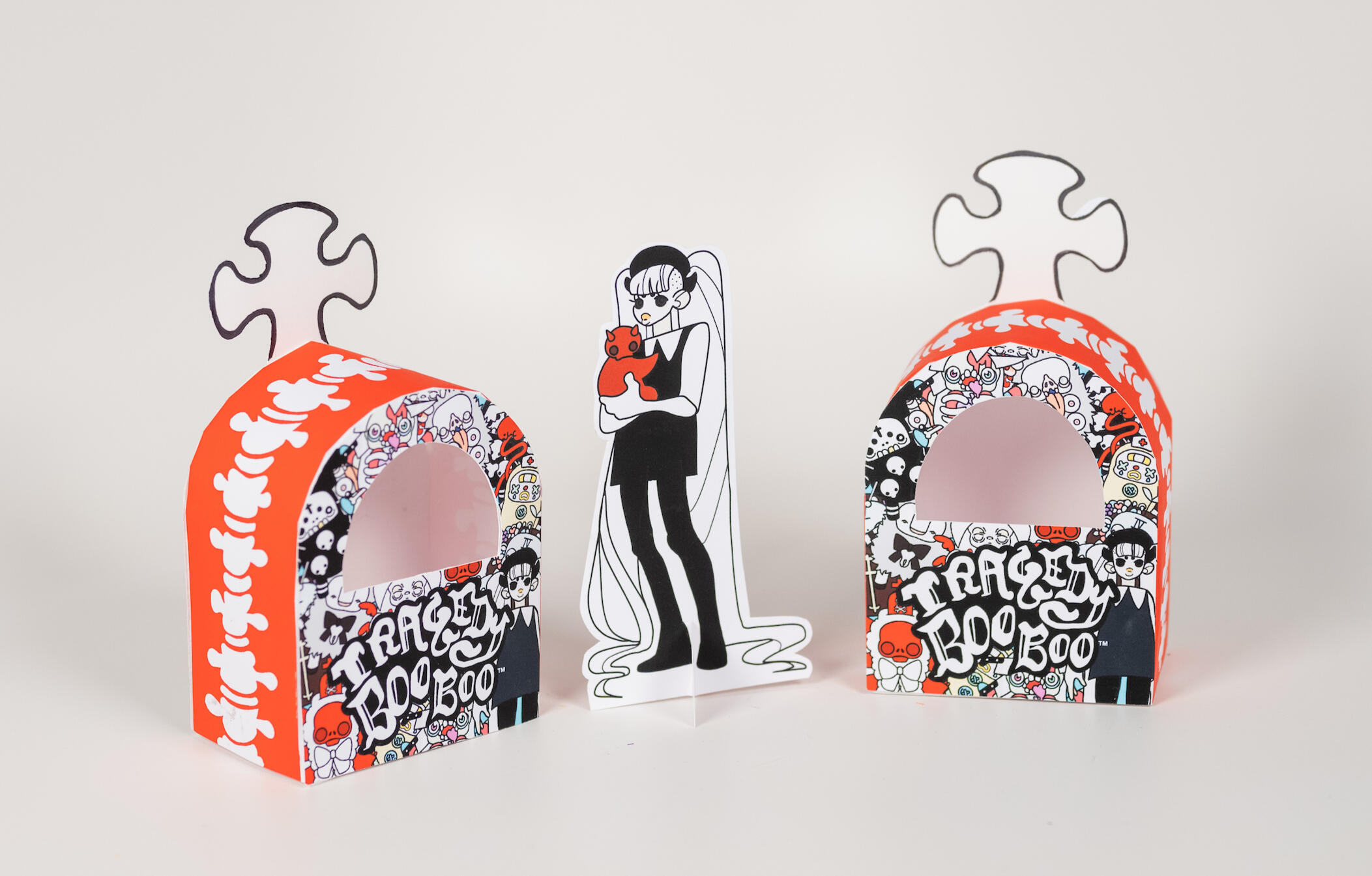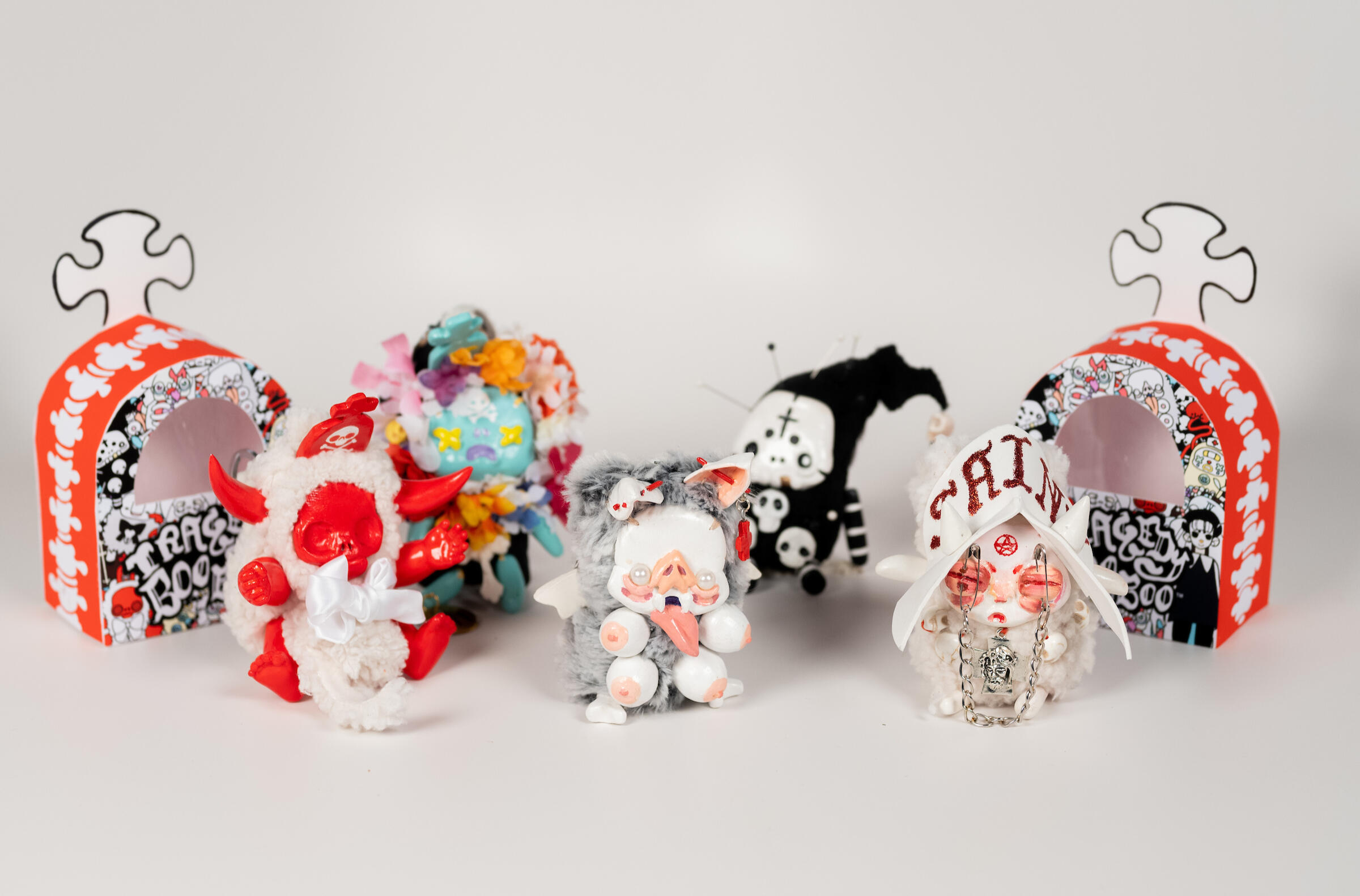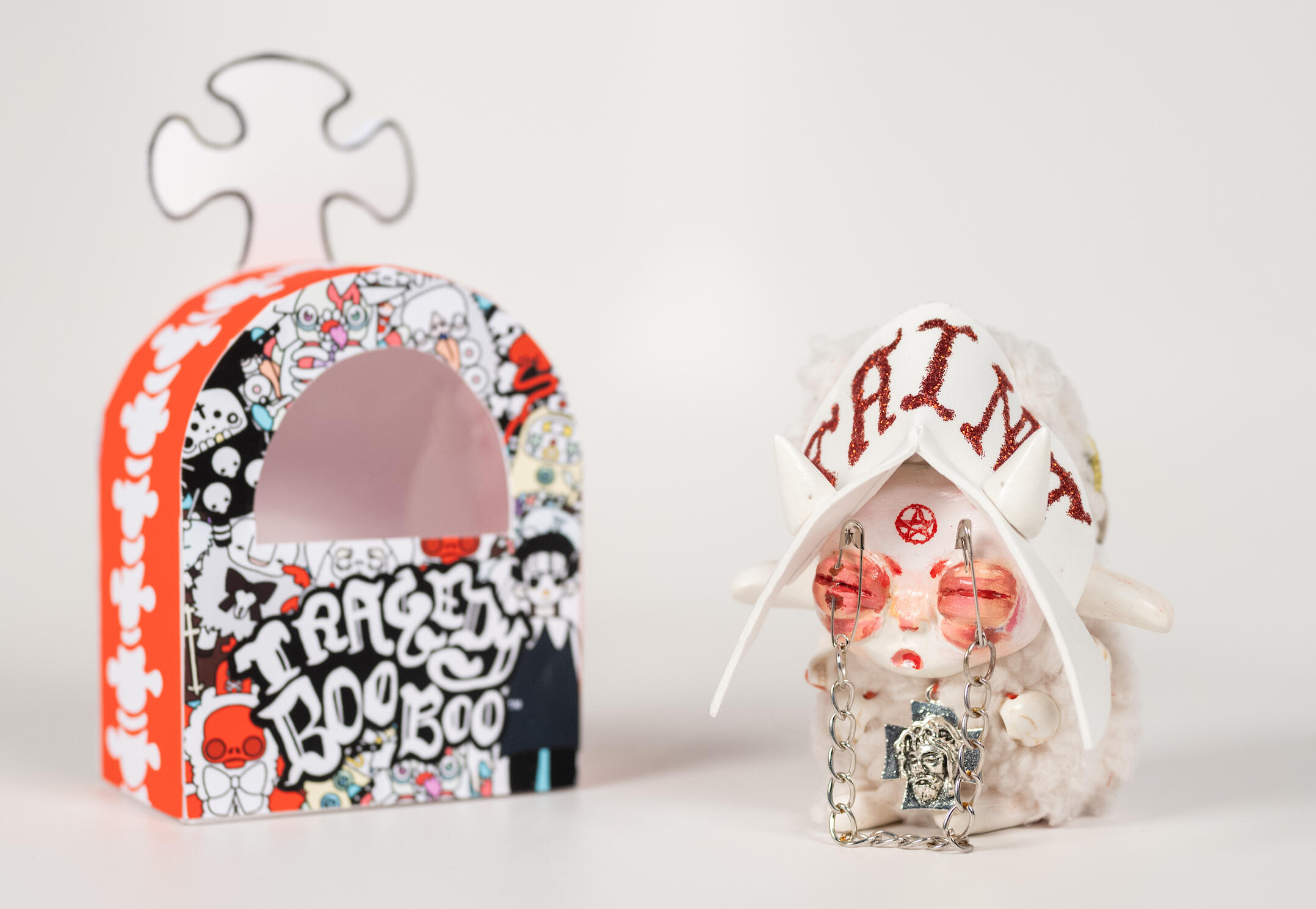 MISERY LOVES COMPANY.Life is hard and it hurts to try- Tragedy Boo Boos won’t sugarcoat the tougher parts of how it feels to be alive. They offer no shield from the woes of life but quiet company in these dark days. Each lovably unloved darling of despair has their own uniquely tragic backstory to share and a sturdy o-ring attachment so you can clip them to any bag, hook, toe tag, leash, or funeral pyre you see fit. Equal parts nihilistic, gloomy, and strange, these portable portents of pity were built to love and made to cry. Much of the time we are left to go it alone, but Tragedy Boo Boos would rather go it with you.